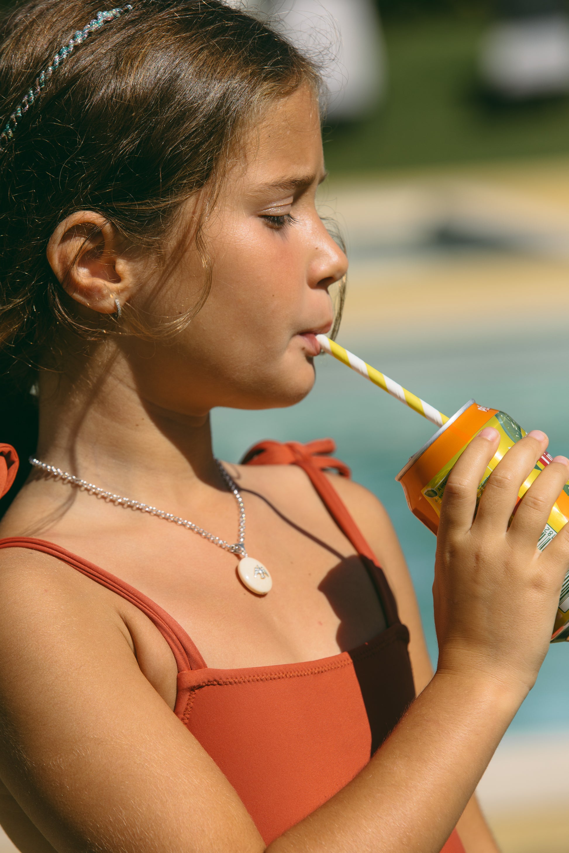 A round pendant crafted from natural vegetal ivory, featuring a detailed Holy Spirit symbol in silver. A meaningful and elegant piece rooted in tradition.
